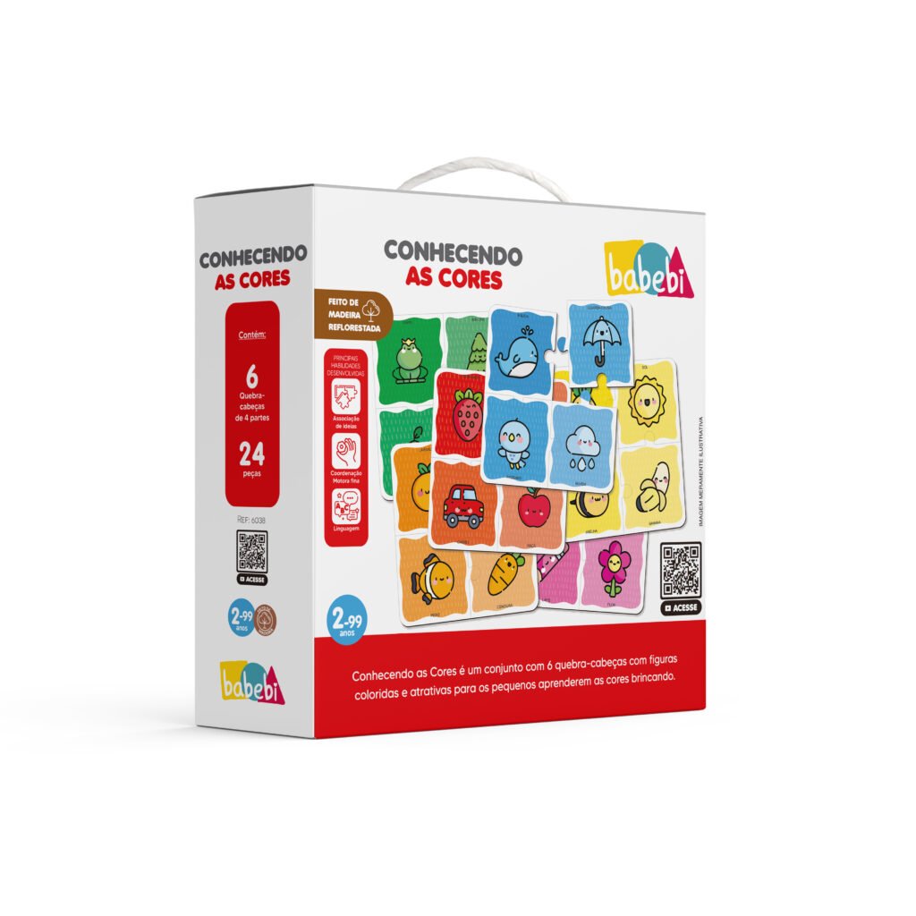 Conhecendo as Cores é um conjunto com 6 quebra-cabeças com figuras coloridas e atrativas para os pequenos aprenderem as cores brincando. Estimula o raciocínio lógico, coordenação motora, associação de ideias, atenção e concentração.
