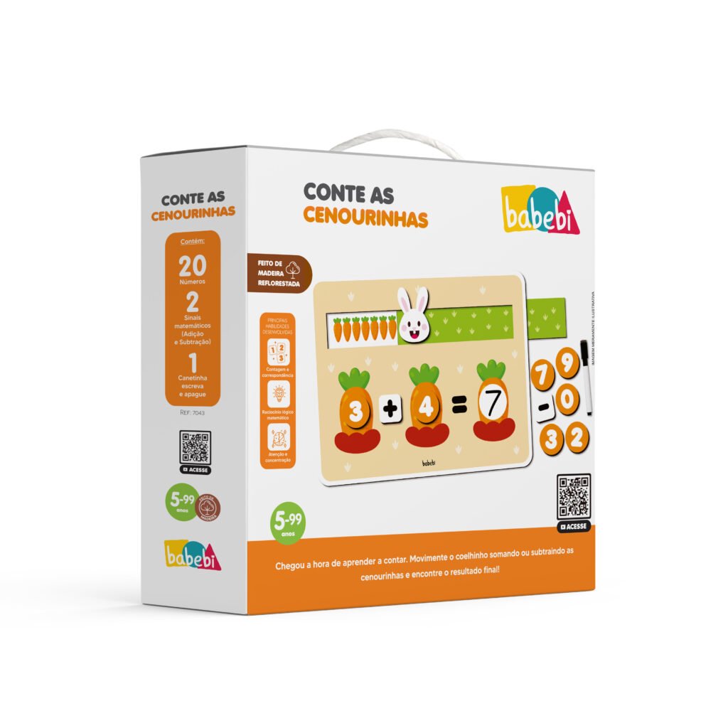 Durante a brincadeira, os pequenos exploram números, quantidades e operações simples, fortalecendo o raciocínio lógico matemático e o reconhecimento numérico. As peças grandes e coloridas estimulam a atenção, a concentração e a participação ativa, tornando o aprendizado mais envolvente.