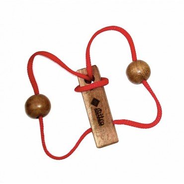 Quebra-cabeça de origem africana em que o desafio é resolver a montagem e desmontagem de um sistema com cordas e anel. Indicado a partir de 14 anos, estimula paciência e raciocínio lógico.