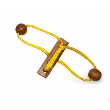 Quebra-cabeça de origem africana em que o desafio é resolver a estrutura de cordas e anel. Indicado a partir de 14 anos, estimula raciocínio, paciência e habilidade.