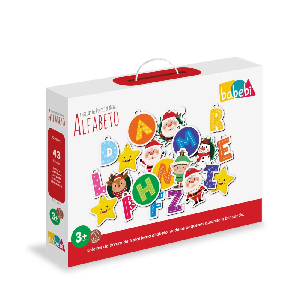 Enfeites de árvore de Natal tema alfabeto, onde os pequenos aprendem brincando.