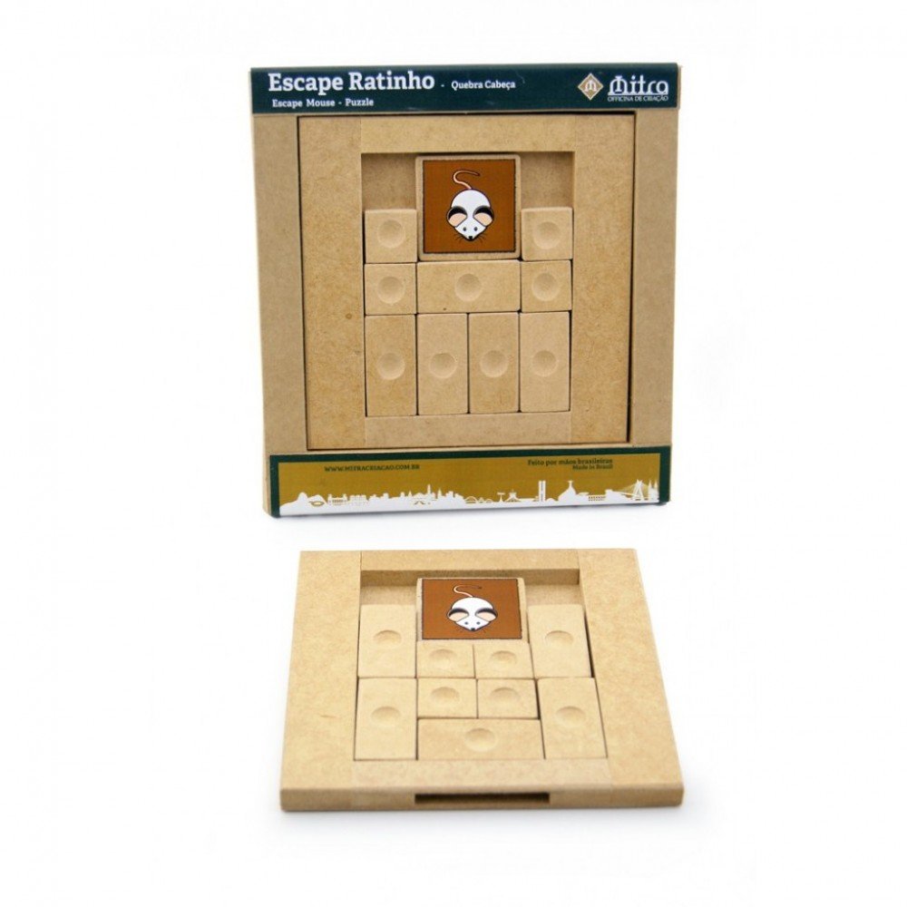Escape é um quebra-cabeça de movimentação em que o objetivo é deslizar as peças do tabuleiro para liberar a saída da peça principal com a figura do rato. Com diferentes níveis de dificuldade, estimula raciocínio lógico e planejamento estratégico.