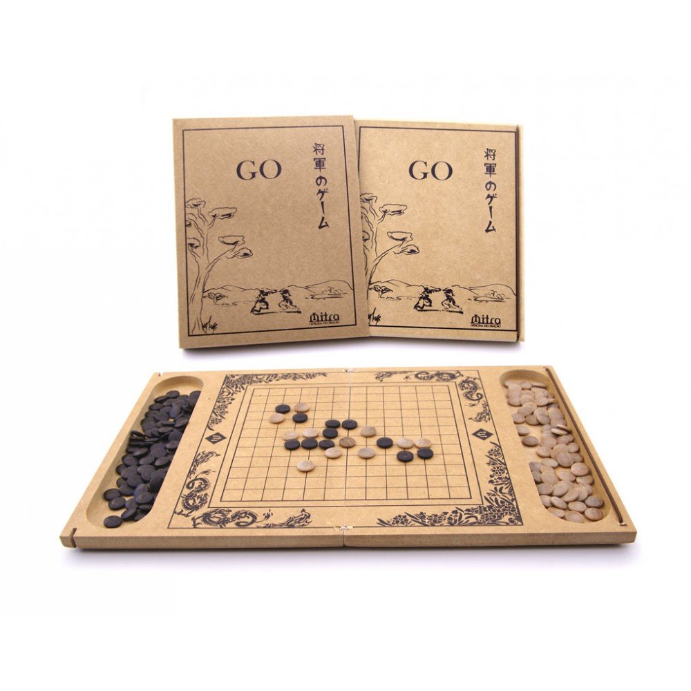 Go é um jogo de estratégia milenar de origem chinesa, de regras simples e grande profundidade tática. Para 2 jogadores, o objetivo é dominar o tabuleiro com peças claras e escuras. Indicado a partir de 9 anos, estimula raciocínio e concentração.
