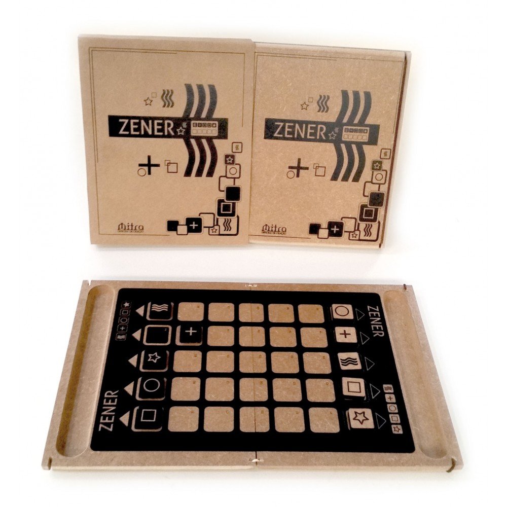 Zener é um jogo de lógica e estratégia para dois jogadores criado por Carlos Seabra, em 2017 e lançado pela Mitra em 2018. É um jogo que implica em estratégias surpreendentes, onde os oponentes são obrigados a mexer peças segundo o movimento do adversário, envolvendo táticas de bloqueio e planejamento de ataque e defesa. O objetivo é ultrapassar com uma única de suas peças a fileira inicial do adversário. As cartas de Zener foram inventadas pelo parapsicólogo Joseph Banks Rhine, em 1920, como uma fácil, estatisticamente mensurável maneira de teste para PES (percepção extra sensorial) de acordo com métodos científicos, sendo usadas na condução de experiências ligadas à percepção extra-sensorial, principalmente no estudo da clarividência. As cartas originais e as peças deste jogo são constituídas pelos desenhos (na ordem de número de linhas): o círculo, a cruz na forma grega, um trio de linhas onduladas, um quadrado e uma estrela de cinco pontas.