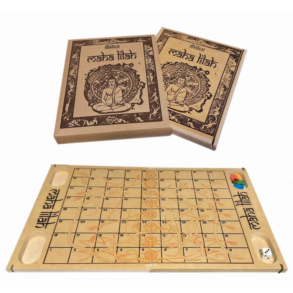 Maha Lilah foi criado na antiga Índia, como parte de uma família de jogos de tabuleiro de dados, que incluía o Pachisi e o Gyan Chaupad, sendo este último o seu nome original. Foi orginalmente divulgado pelo escritor Harish Johari (1934 – 1999) que dedicou sua vida a difundir a cultura e a espiritualidade hindu para o ocidente. Este jogo milenar pode ser considerado um oráculo, pois diz ter sido projetado pelos videntes e santos da índia como uma ferramenta para entender a relação do eu individual com o Eu Absoluto. As 72 casas do tabuleiro, permitem os jogadores traçar os caminhos que representam o curso de suas vidas. Cada casa representa uma virtude ou um vício, um aspecto da consciência ou um plano da realidade e poderá ser interpretado com os comentários que explicam seu significado (incluso no Manual do Jogador e GPS do jogador Lilah). O progresso do jogador no tabuleiro é ditado por um dado que, pela tradição, correspondente às forças do carma. Encontros repetidos com as cobras e flechas no tabuleiro revelam a trajetória do jogador, que, ao iniciar uma partida, traz um questionamento sobre algo ou um propósito que vem de encontro com uma busca de um maior autoconhecimento e até mesmo em um desapego gradual das ilusões do ego.