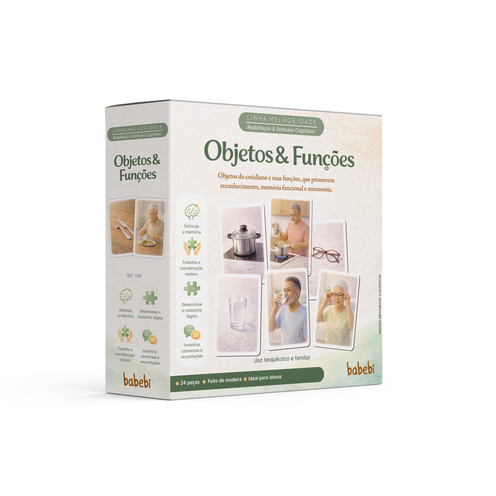 O Objetos & Funções é um recurso terapêutico desenvolvido para estimular o reconhecimento, a memória funcional e a autonomia por meio da associação entre objetos do cotidiano e suas respectivas funções. A proposta convida o usuário a observar, identificar e relacionar cada item à sua utilidade prática, fortalecendo conexões cognitivas ligadas à vida diária.