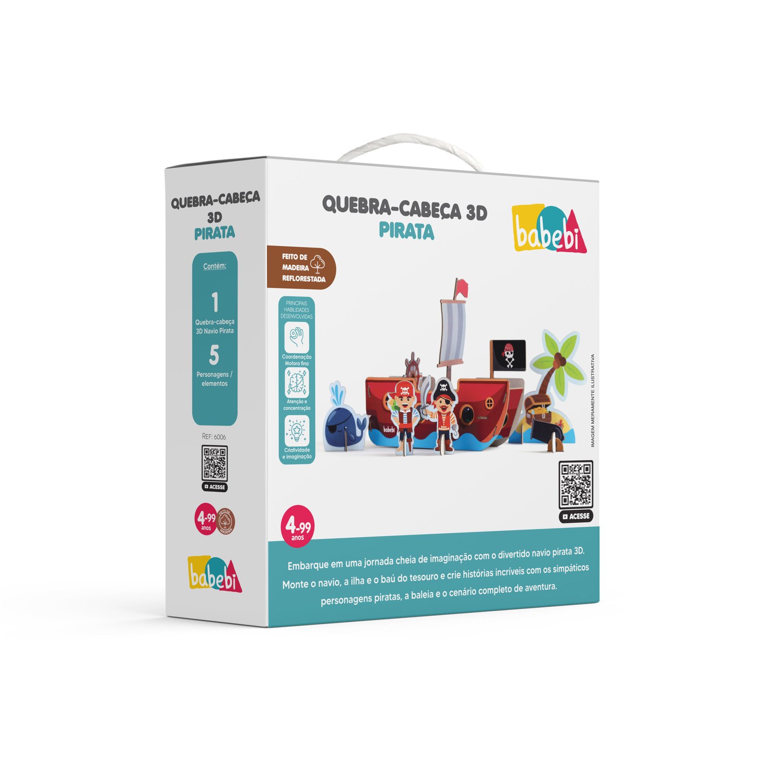 Monte este divertido navio, os piratas, a ilha e o tesouro perdido. Brinque, imagine, conte e reconte histórias.