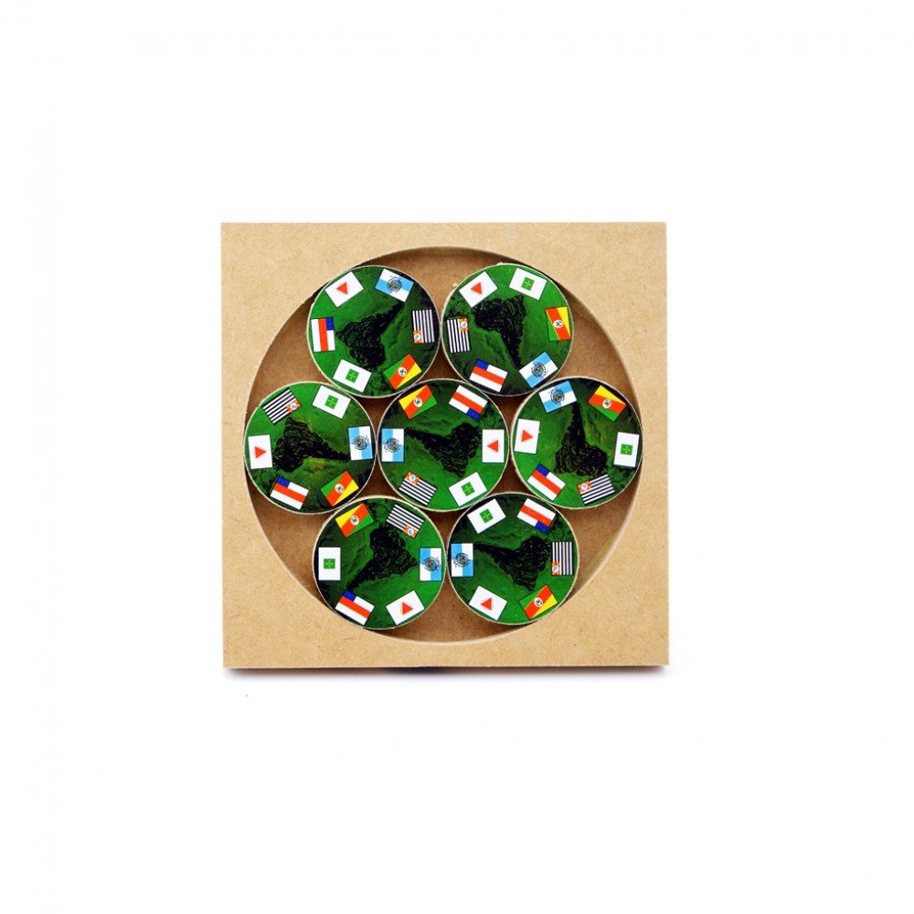 Com tema de bandeiras dos Estados do Brasil este quebra cabeça é instigante e desafiador. O jogador terá a tarefa de encaixar todas as 7 (sete) rodas, cada uma com 7 (sete) bandeiras de Estados Brasileiros, de modo que todas as bandeiras do mesmo Estado fiquem alinhadas.