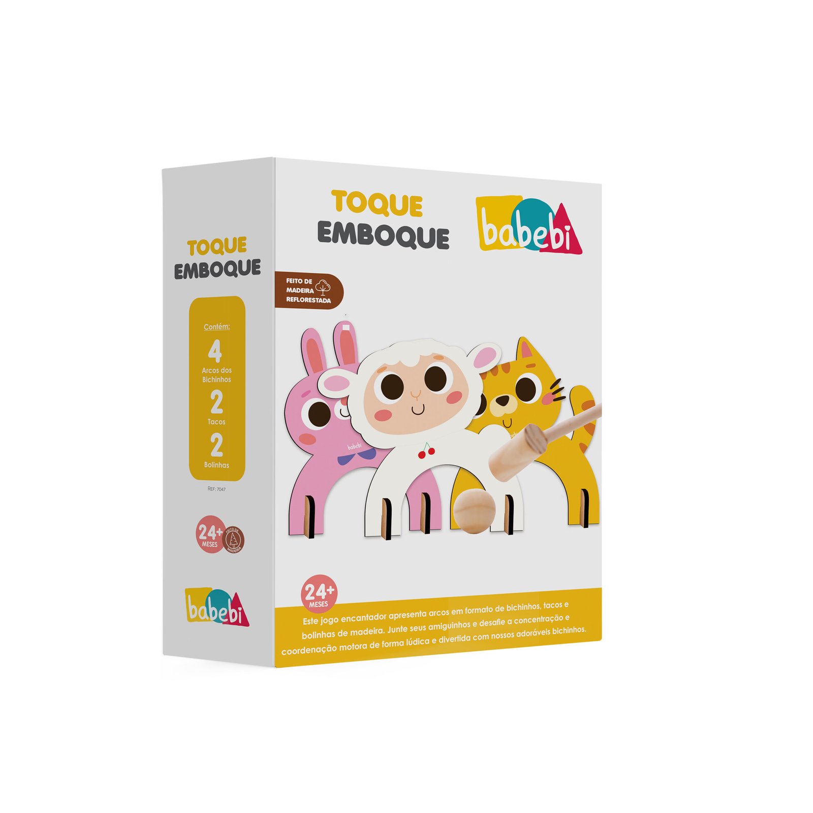 Este jogo encantador apresenta arcos em formato de bichinhos, tacos e bolinhas de madeira. Junte seus amiguinhos e desafie a concentração e coordenação motora de forma lúdica e divertida com nossos adoráveis bichinhos.